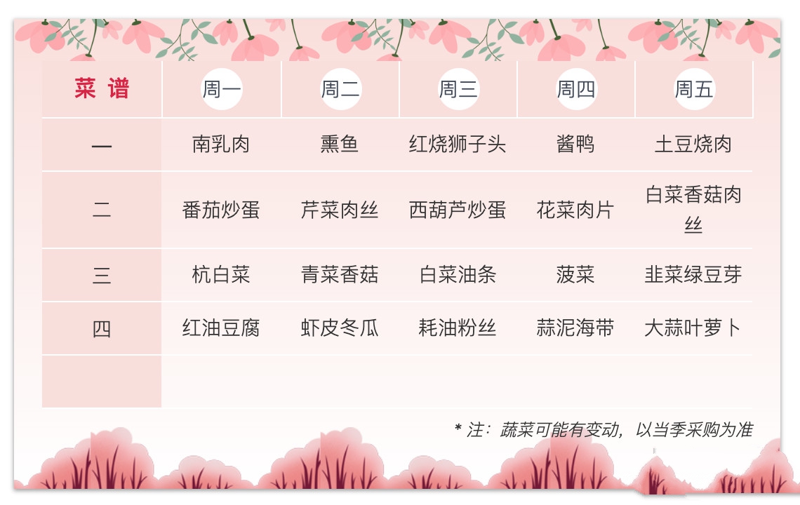 菜 谱 参 考 如 下